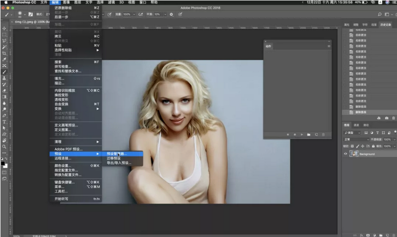 找一张图片,按照国际惯例,我找了一张美女照片。打开照片并确保它处于RGB/8位颜色模式(图像>模式)。Scribble Artist Action 适用于具有高分辨率和均衡照明的图像,默默点赞。